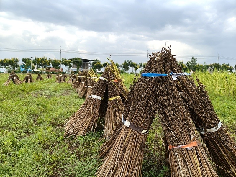 在望江县杨湾镇杨闸村连片田畴里,一排排挺拔的芝麻秆缀满硕果。眼下,正是芝麻收获的黄金时节,农户们穿梭其间,忙着收割、捆扎、晾晒。据统计,2025年杨湾镇种植芝麻1000余亩,在当地有专人上门收购,收购价每斤七到八元,一亩地就能带来约1500元的收入,解决了销售的后顾之忧。当地还延伸出芝麻油、芝麻糊等产品,不断拓展产业链,为乡村振兴注入了新活力。(黄志敏)