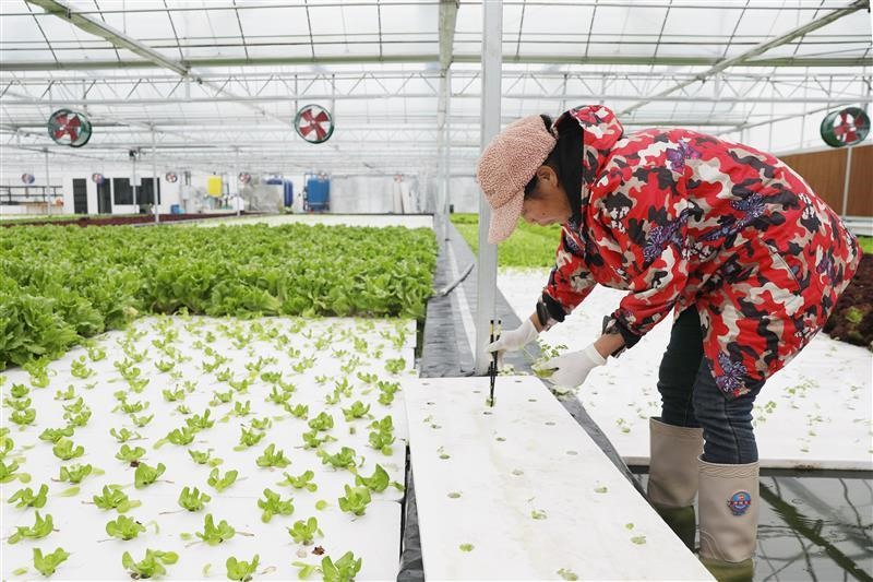 近日,在望江县漳湖镇一农业科技公司的大棚内,成片水培蔬菜绿意盎然、长势喜人。工人们分工协作、有序作业,忙着采收、育苗、栽种,一派繁忙的生产景象。漳湖镇立足现代农业发展方向,于2025年11月建成投产无土栽培示范项目,通过科技赋能、集约生产,实现蔬菜全年高效产出,预计年产蔬菜20万斤,产值近百万元,以智慧农业新模式为乡村振兴注入新动能。(徐火炬 高圆圆)