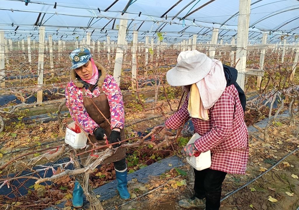 眼下,正值葡萄冬季管理关键时期,望江县杨湾镇曾墩村一葡萄园内,种植户抢抓有利时机,积极组织人员进行剪枝、绑枝、覆盖地膜等产业管护,为2026年葡萄丰产丰收打下良好基础。据了解,该葡萄园是曾墩村的“一村一品”,采取“专项扶贫+农户合作”模式经营,总种植面积40余亩,年产葡萄约12万斤,全年产值60万元左右,每年为村集体增收3万余元,同时带动周边10余名农户实现“家门口”就业,人均年增收8000元。(朱洋帆)